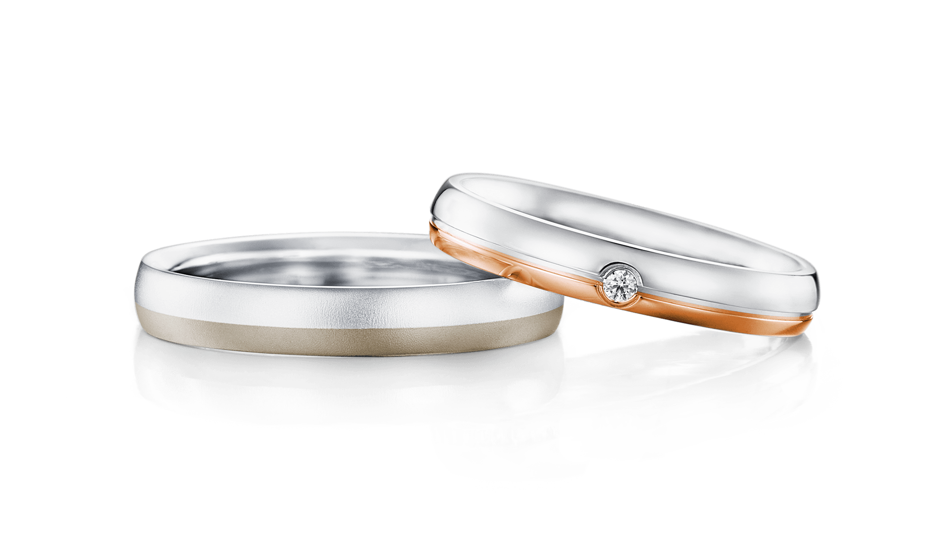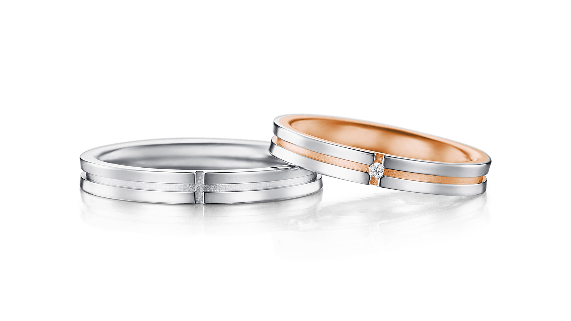 色澤往往是第一眼的印象。若兩人選擇相同金屬材質,即使款式不同,也能維持整體感。例如常見的Pt950鉑金呈現清透銀白色調,質感簡潔俐落;K18玫瑰金則帶有柔和暖色,氛圍溫潤;而帶有細緻棕調的金屬色,則更顯沉穩。當兩枚戒指在光線下呈現相似色澤時,整體畫面會顯得和諧,即使線條不同,也能一眼看出關聯。