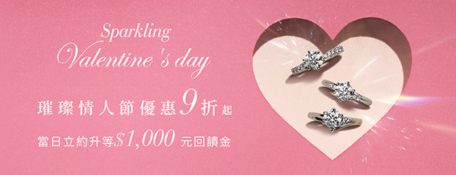 幸福優惠活動9折起,嚴選特惠璀璨美鑽,享85折起,滿額再享現金回饋透過網路預約來店贈$500,下訂婚戒立折$1000元!立約婚戒系列即可抽日本人氣真鑽飾品新品上市經典訂製鑽鍊,立約贈粉霧絨感珠寶盒誠摯邀請您攜手另一伴前往尋找屬於兩位的命定戒指!