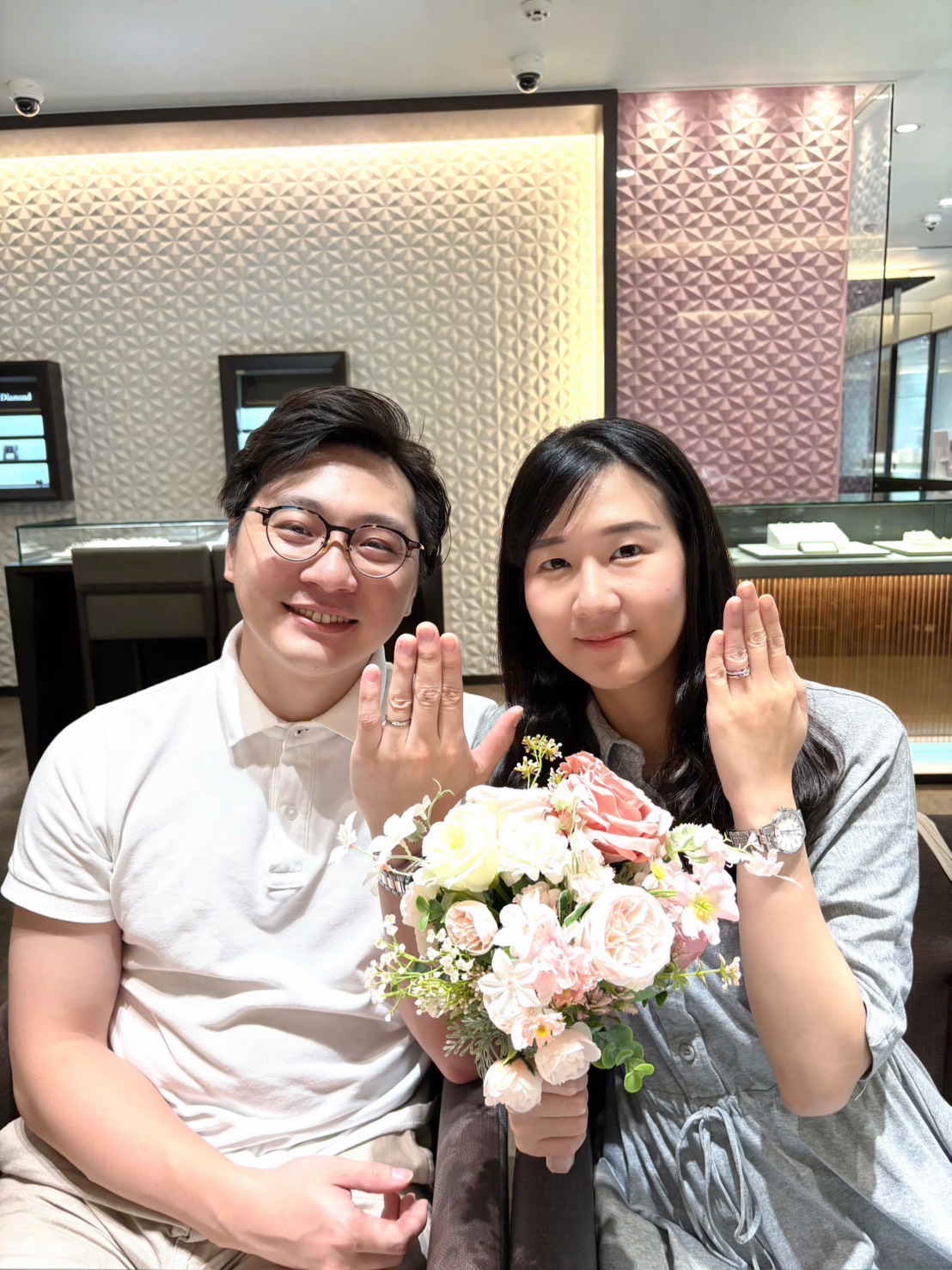 求婚當天用的是和I-PRIMO借的鋯石戒,回台灣後才正式和I-PRIMO確認鑽石和戒台款式,當真鑽到手的那刻,才發現光芒和鋯石完全不同,閃亮到讓人移不開眼睛