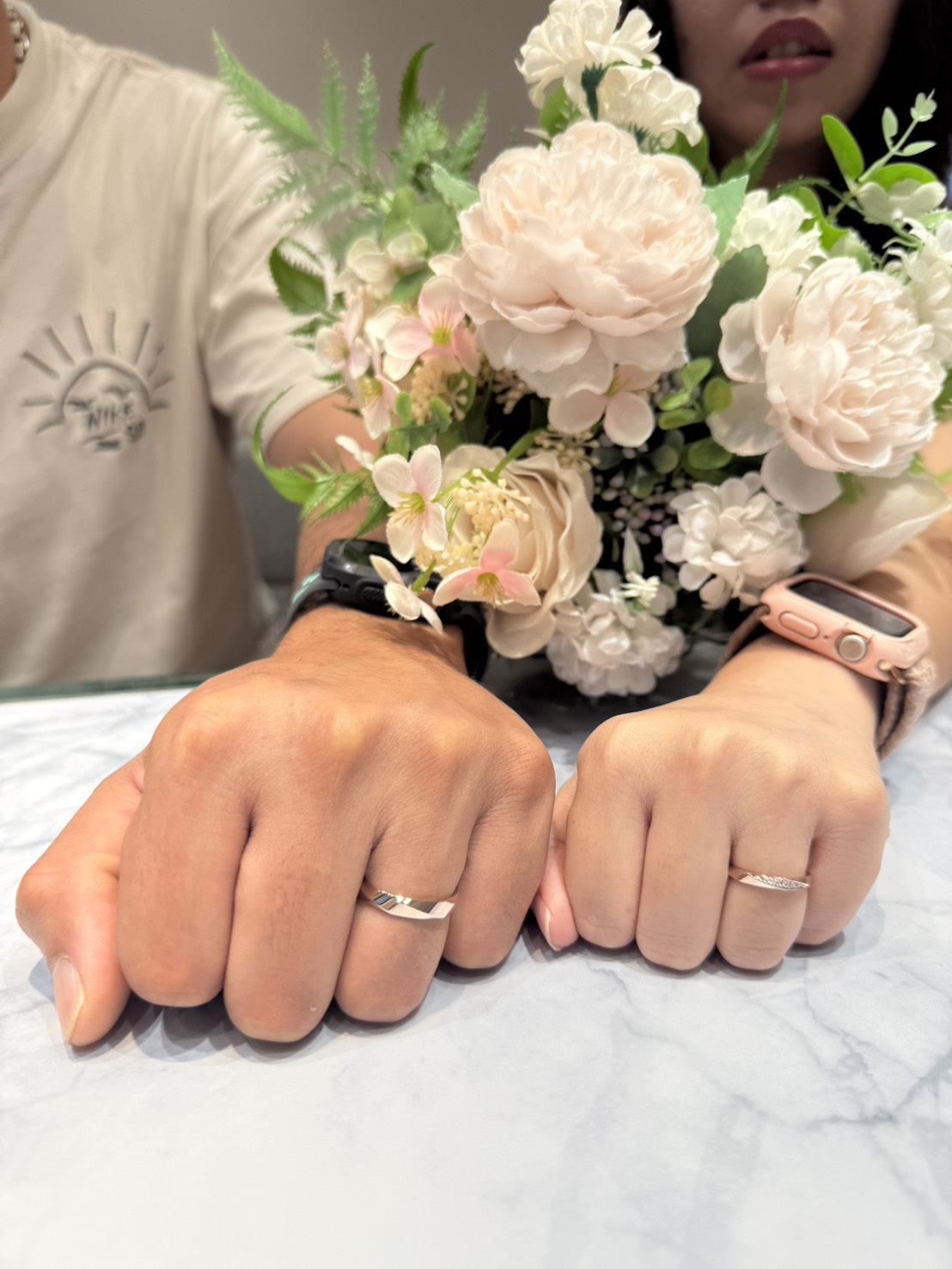4. 延續3的部分,Anne 或許是看出我的猶豫不決,亦或是原本的SOP就是要讓顧客挑選出最滿意、最想要的戒指;Anne 拿了許多相近的款式或同款不同色系的戒指讓我試,這個舉動對於我來說,我的感受是非常好的,原因是我擔心造成諮詢師的麻煩因此將就選擇出一枚戒指。甚至選到後來我開始有點混亂,幸好Anne 都有幫我記得哪個是我喜歡且感興趣的,先幫我留下來XDD經過一番選妃流程,終於找到我不猶豫、不後悔且越看越順眼的戒指了٩(˃̶͈̀௰˂̶͈́)و