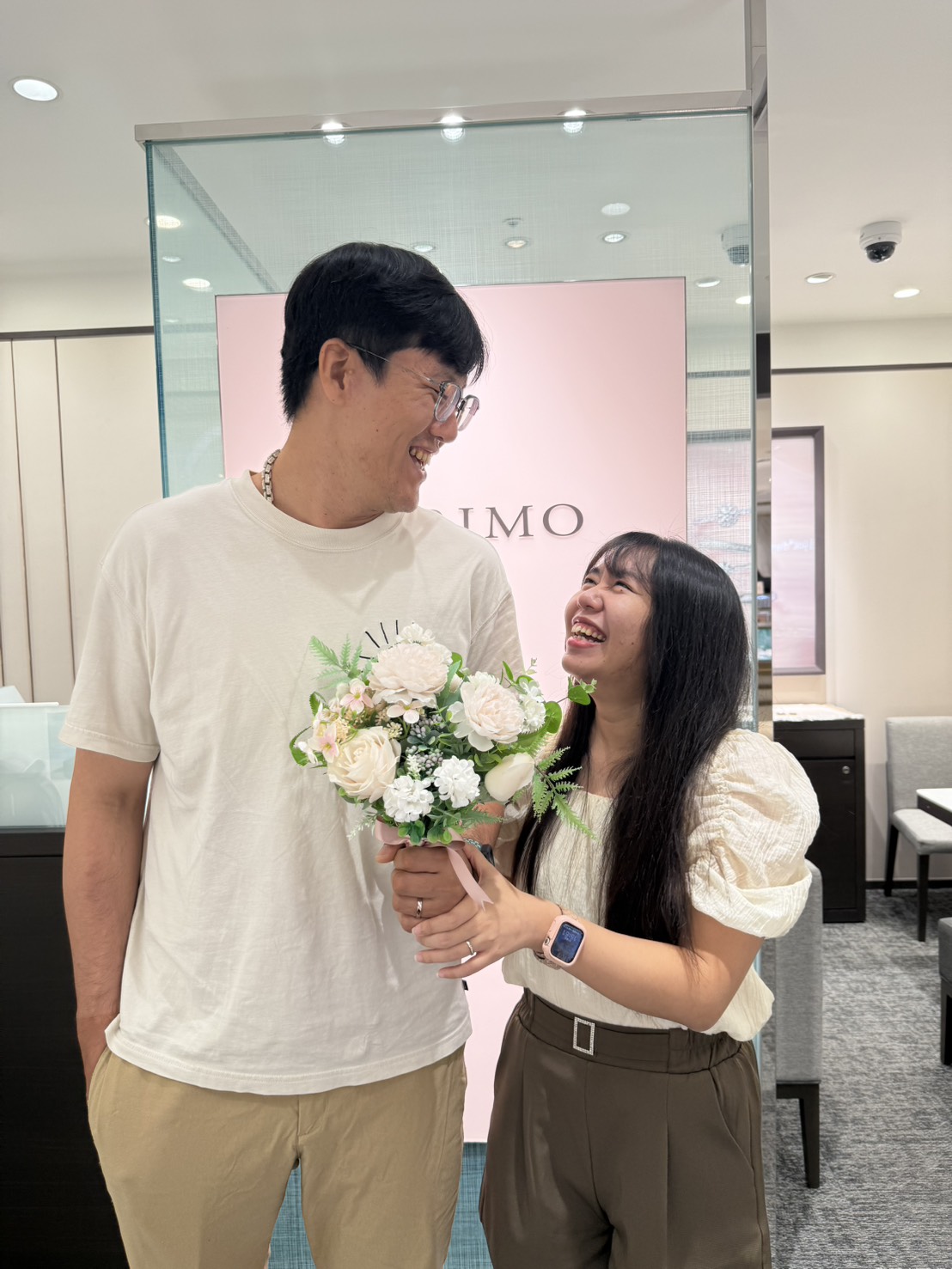 我與男朋友選好各自喜歡的戒指後,Anne幫我們開立訂單時有向我們告知目前的活動及優惠,有專屬刻字、客製彩鑽石等等,由於不需要加購我們就都請他加工了XD