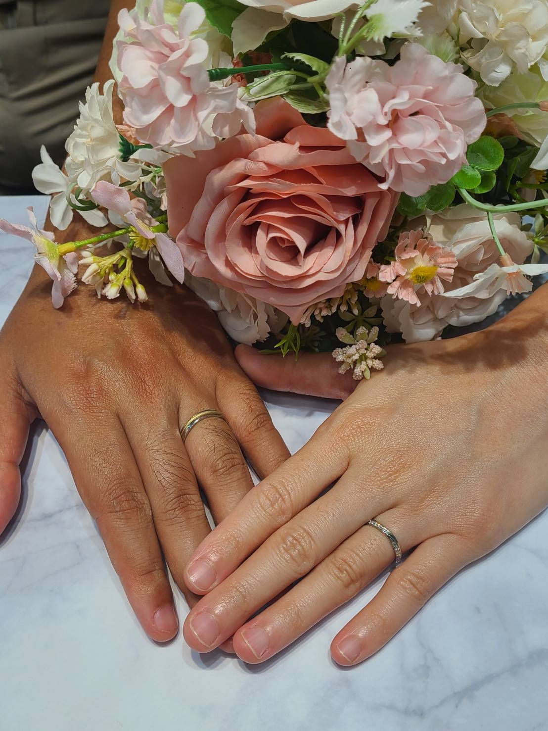 諮詢過程中,Natalie還貼心地準備了茶點,讓整個挑選過程彷彿是一場愉快的下午茶時光。戒指本身的品質也讓人非常放心,細節精緻、做工細膩,搭配活動還能獲得客製化刻字服務,讓這對戒指成為我們專屬、獨一無二的紀念。