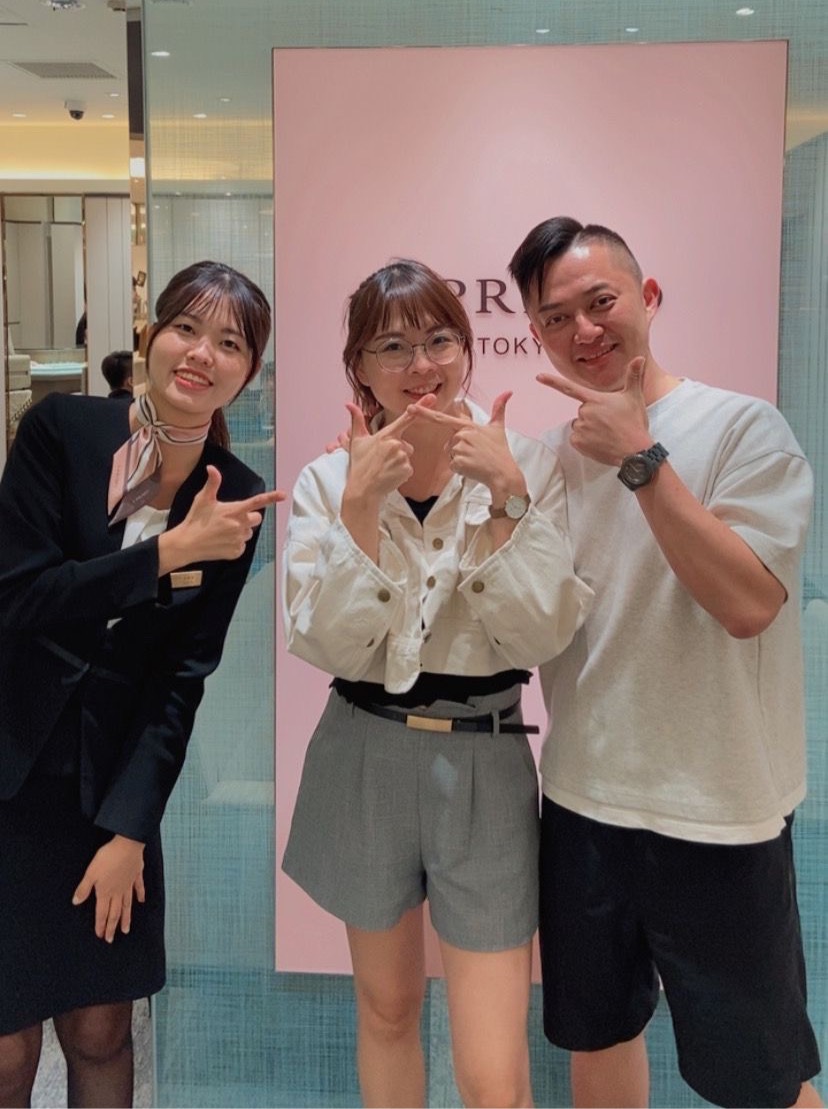 兩位諮詢師都非常專業且貼心,挑選戒指的過程中,會先詢問想要的款式,並且細心的幫忙分析手型和膚色還有我們的喜好,推薦適合的戒指試戴,在反反覆覆的試戴過程中,不厭其煩的分析、詢問、推敲和引導,漸漸的幫助我們找到喜愛的對戒,不會讓你在百百種的戒指海裡,迷失方向。
